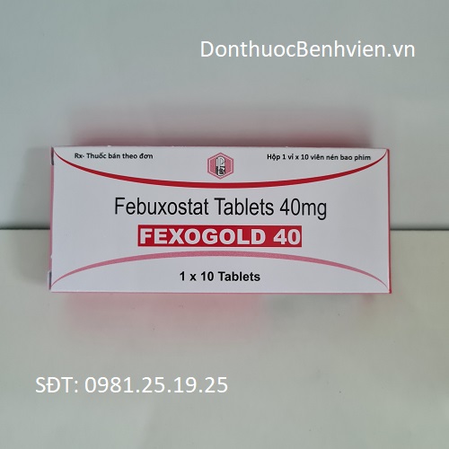 Viên uống Fexogold 40mg Chỉ định phòng ngừa và điều trị tăng acid uric huyết ở bệnh nhân trưởng thành đang trải qua hoá trị liệu do bệnh máu ác tính có nguy cơ trung bình đến cao hội chứng li giải khối u...Đơn Thuốc Bệnh Viện xin cung cấp một số thông tin liên quan mà người dùng cần biết bao gồm : Thành phần, công dụng, chỉ định….Những câu hỏi mà người dùng quan tâm như sau: